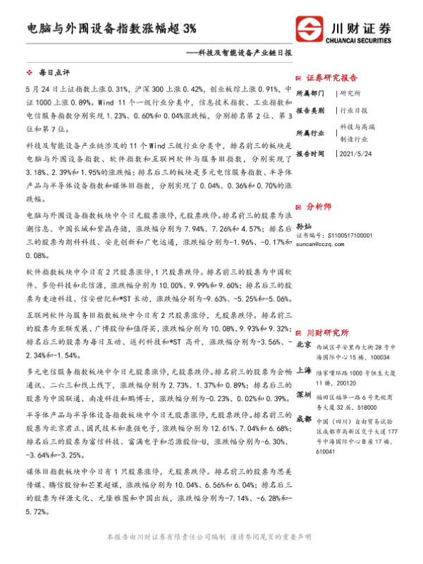 【川财证券】【20210524】电脑与外围设备指数涨幅超3%-5页