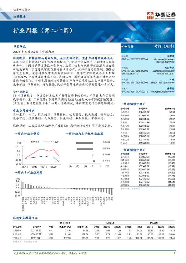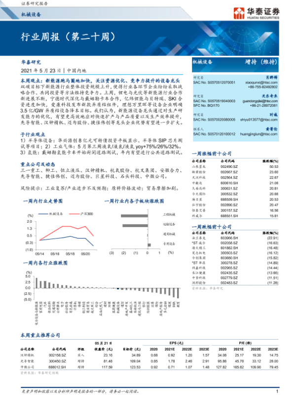 【华泰证券】【20210523】20210523-华泰证券-机械设备行业周报(第二十周)-18页