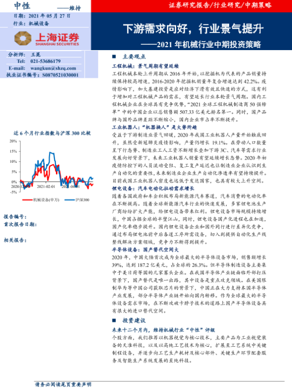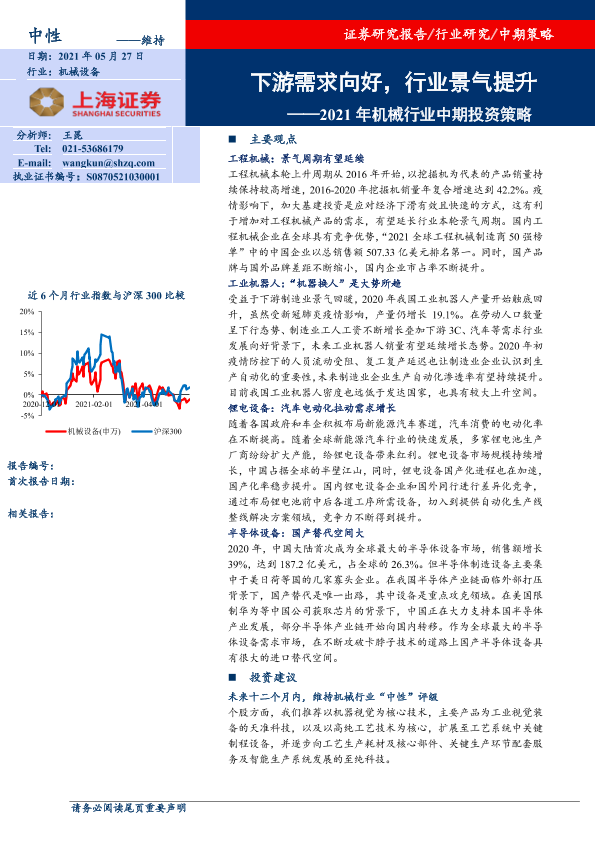 【上海证券】【20210527】2021年机械行业中期投资策略:下游需求向好,行业景气提升-39页