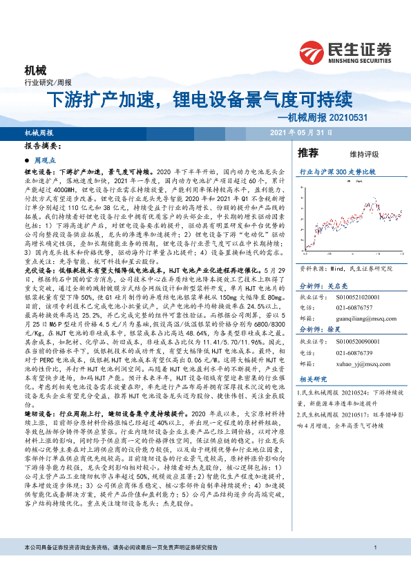 【民生证券】【20210531】20210531-民生证券-机械周报:下游扩产加速,锂电设备景气度可持续-22页