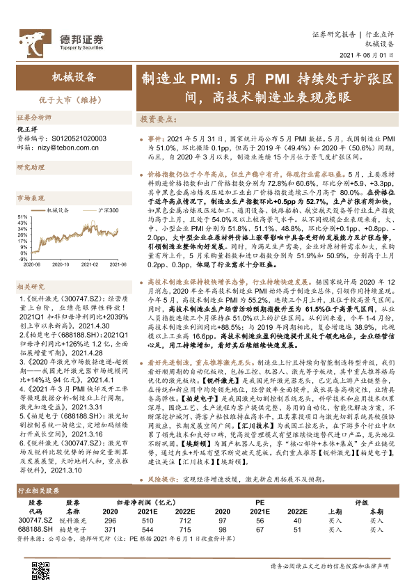 【德邦证券】【20210601】制造业PMI:5月PMI持续处于扩张区间,高技术制造业表现亮眼-2页