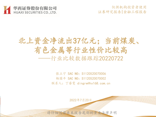 【华西证券】【20220723】行业比较数据跟踪:北上资金净流出37亿元;当前煤炭、有色金属等行业性价比较高-24页
