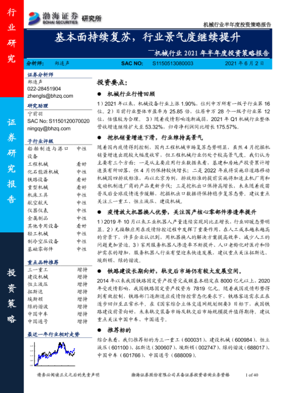 【渤海证券】【20210602】机械行业2021年半年度投资策略报告:基本面持续复苏,行业景气度继续提升-40页