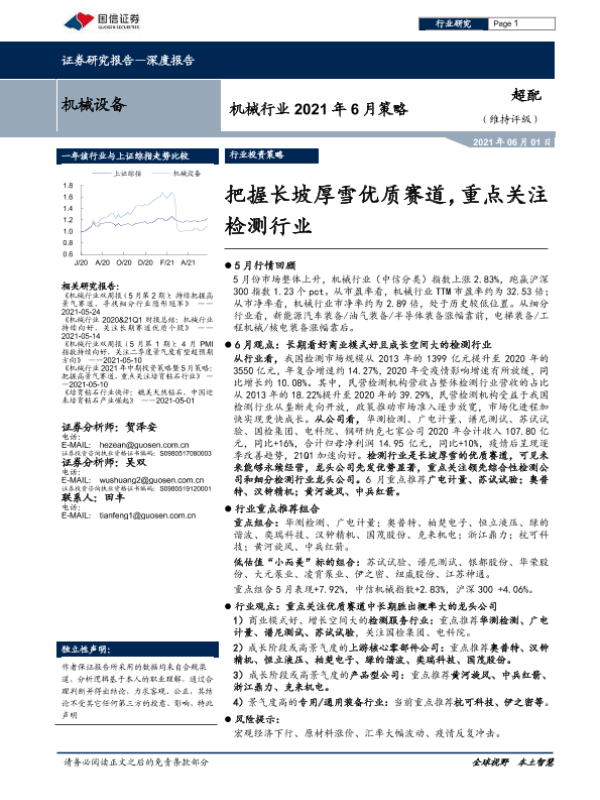 【国信证券】【20210601】机械行业2021年6月策略:把握长坡厚雪优质赛道,重点关注检测行业-20页