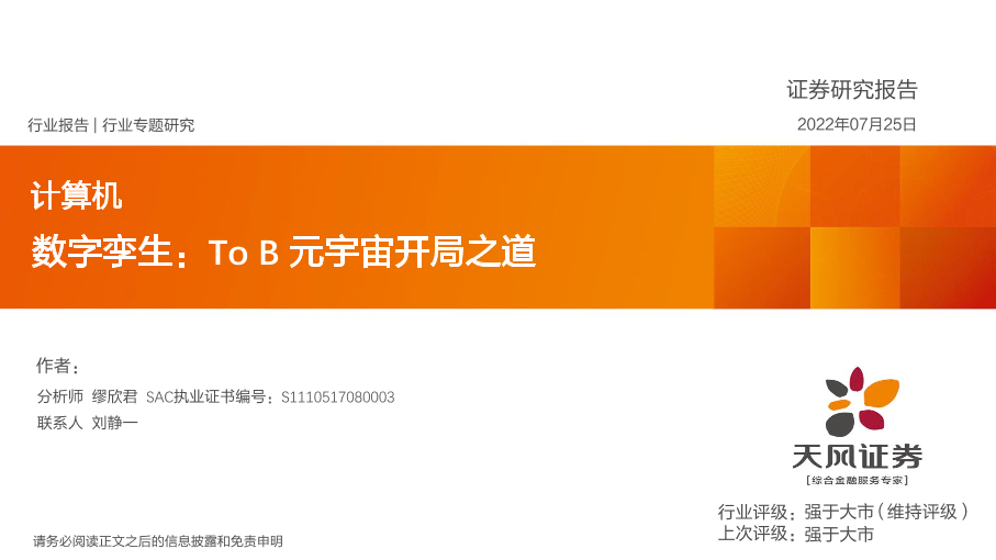 【天风证券】【20220725】计算机行业专题研究:数字孪生,ToB元宇宙开局之道-52页