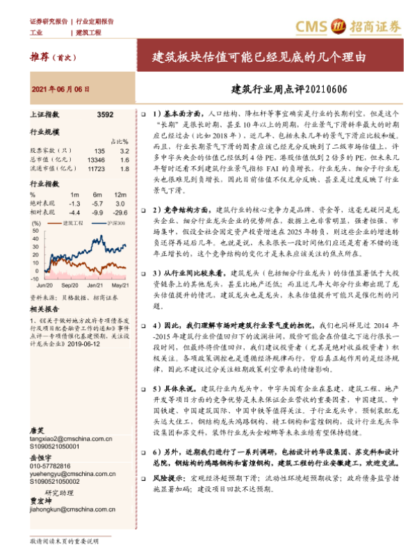 【海通证券】【20210606】建筑行业周点评:建筑板块估值可能已经见底的几个理由-2页