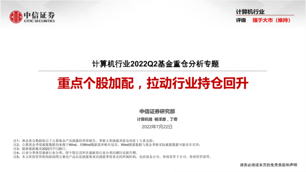 【中信证券】【20220722】计算机行业2022Q2基金重仓分析专题:重点个股加配,拉动行业持仓回升-16页