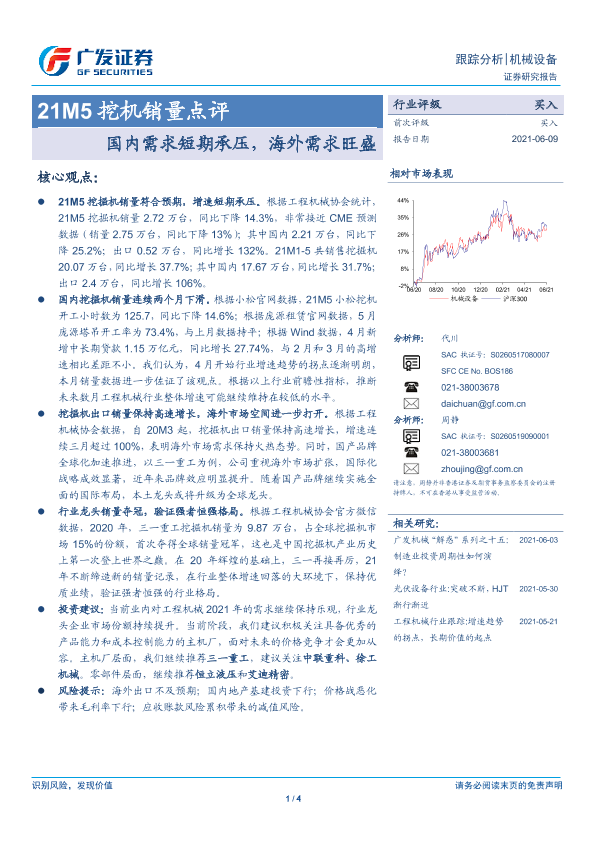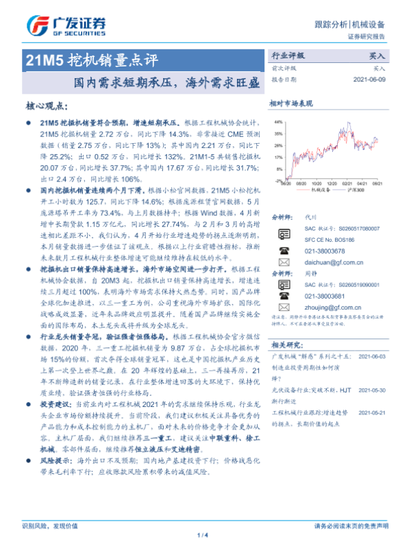 【广发证券】【20210609】21M5挖机销量点评:国内需求短期承压,海外需求旺盛-4页