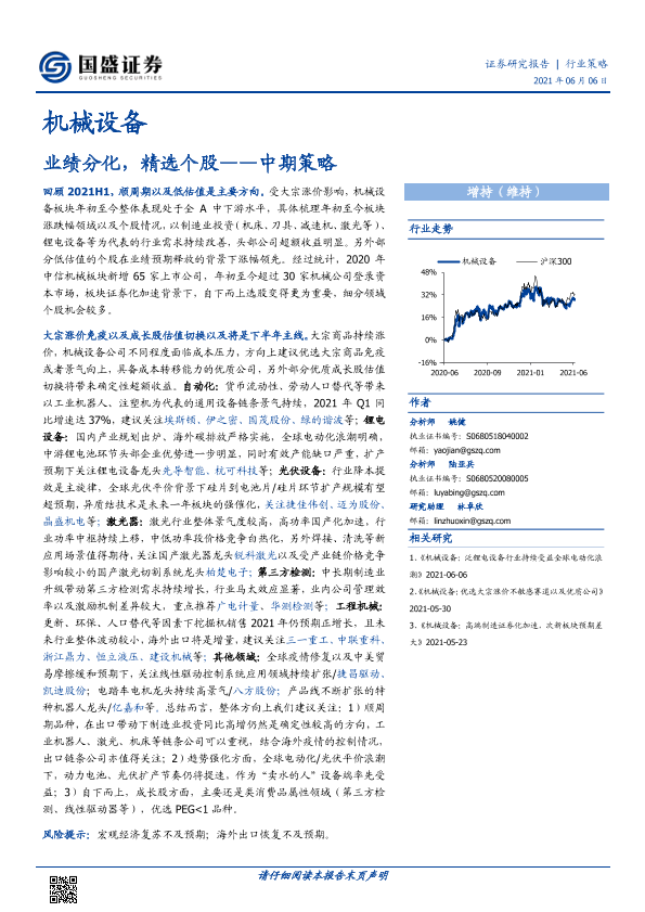 业绩分化 个股精选 中期策略 机械设备 行业分析