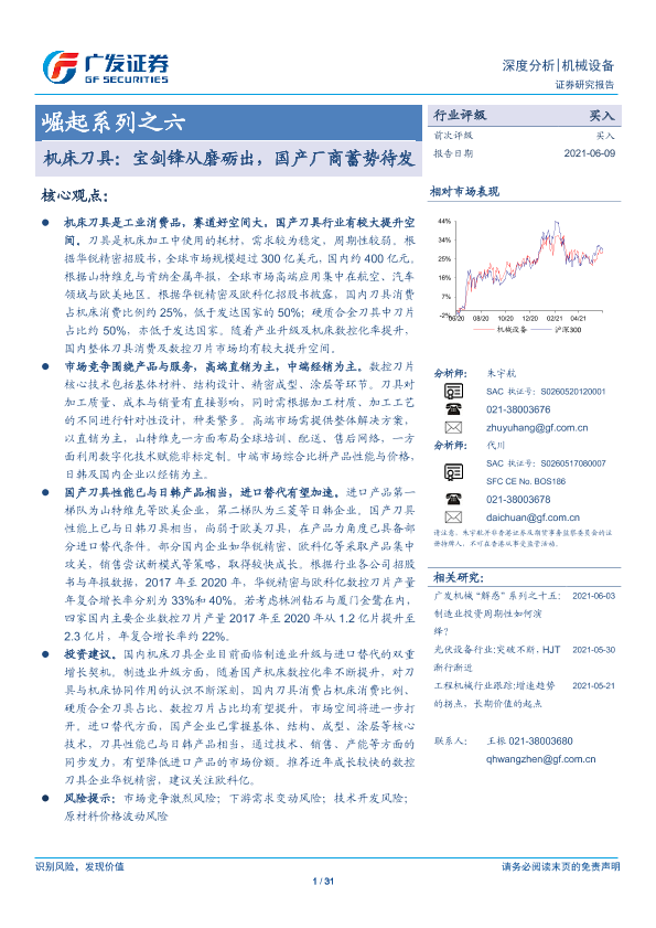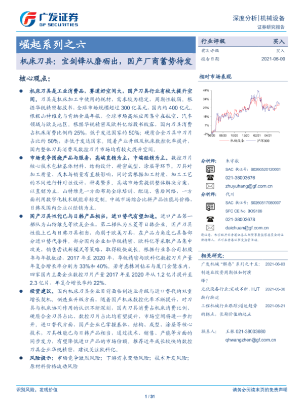 【广发证券】【20210609】机床刀具:宝剑锋从磨砺出,国产厂商蓄势待发-31页