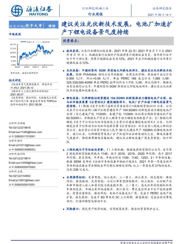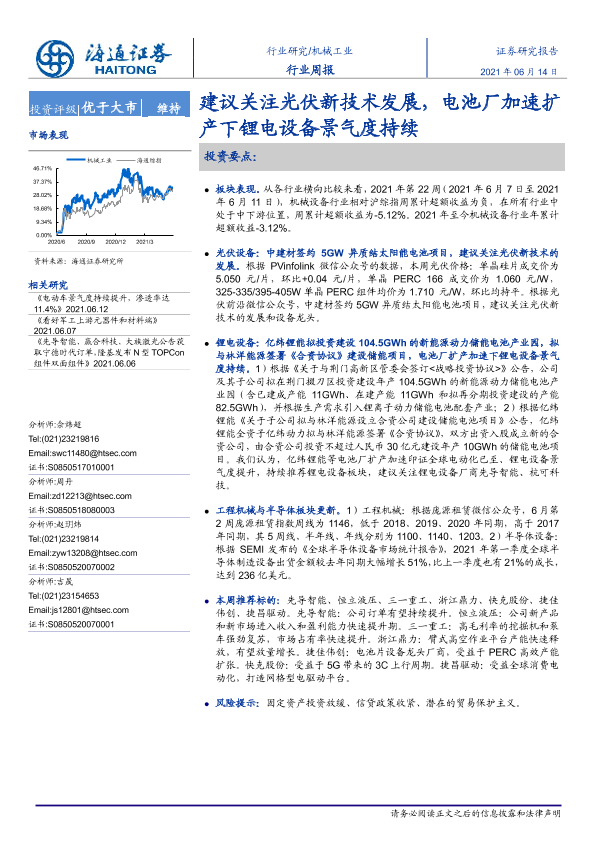 【海通证券】【20210614】20210614-海通证券-机械工业行业周报:建议关注光伏新技术发展,电池厂加速扩产下锂电设备景气度持续-9页