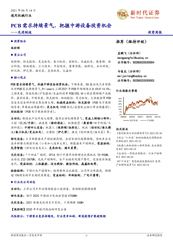 【新时代证券】【20210614】20210614-新时代证券-通用机械行业:PCB需求持续景气,把握中游设备投资机会-12页