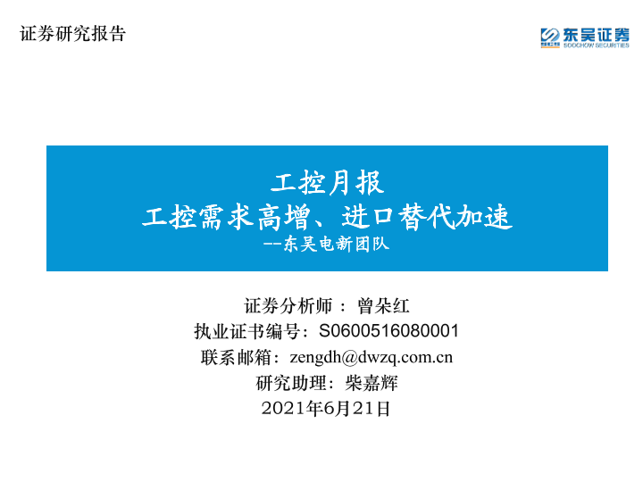 【东吴证券】【20210621】工控月报:工控需求高增、进口替代加速-17页