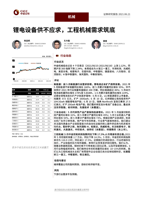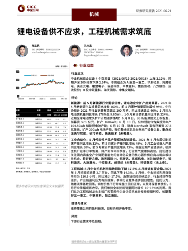 【中金公司】【20210621】机械行业:锂电设备供不应求,工程机械需求筑底-14页