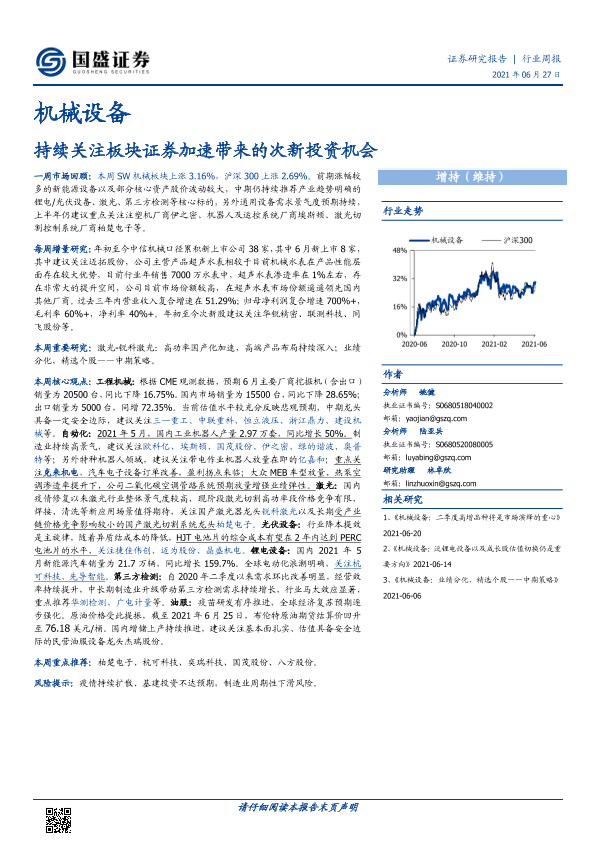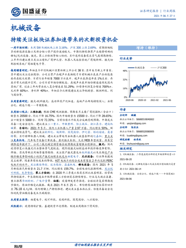 【国盛证券】【20210627】20210627-国盛证券-机械设备行业周报:持续关注板块证券加速带来的次新投资机会-12页