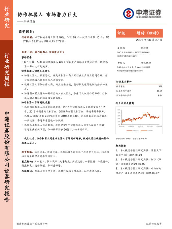 【申港证券】【20210627】20210627-申港证券-机械设备行业研究周报:协作机器人市场潜力巨大-14页