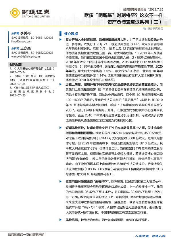 【财通证券】【20220725】欧债“明斯基”时刻将至?这次不一样-29页