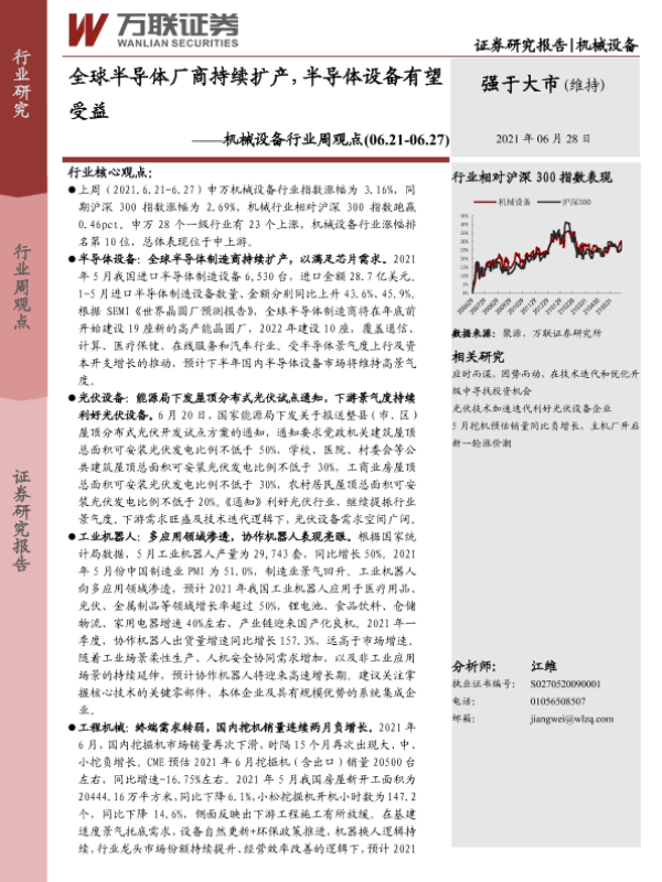 【万联证券】【20210628】20210628-万联证券-机械设备行业周观点:全球半导体厂商持续扩产,半导体设备有望受益-12页
