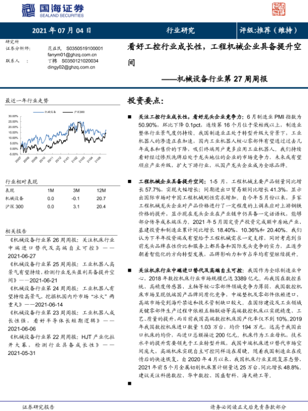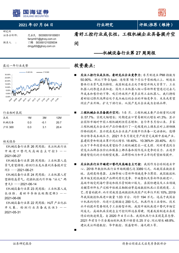 【国海证券】【20210704】机械设备行业第27周周报:看好工控行业成长性,工程机械企业具备提升空间-23页