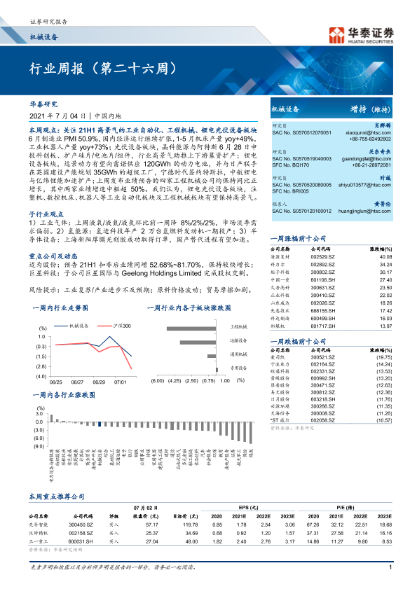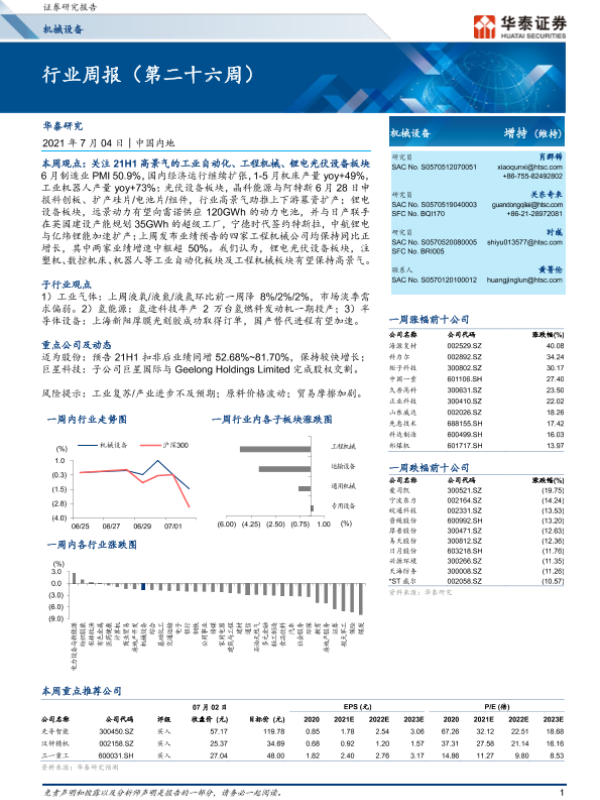【华泰证券】【20210704】20210704-华泰证券-机械设备行业周报(第二十六周)-17页
