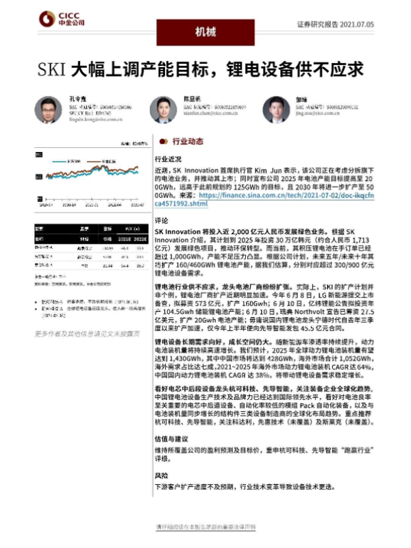 【中金公司】【20210705】SKI大幅上调产能目标,锂电设备供不应求-6页