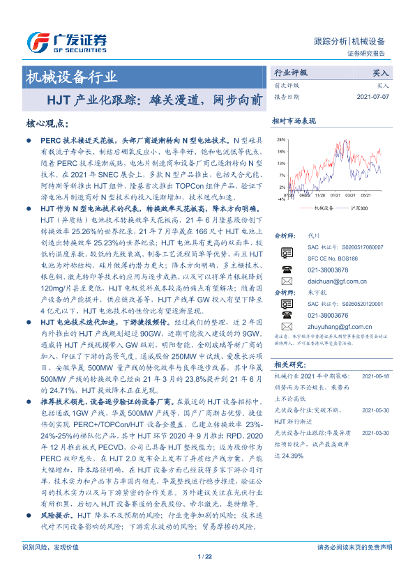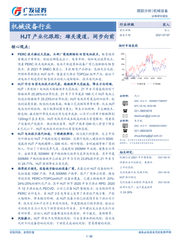 【广发证券】【20210707】20210707-广发证券-机械设备行业:HJT产业化跟踪:雄关漫道,阔步向前-22页