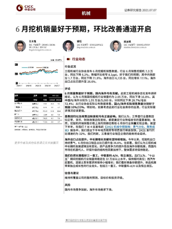 【中金公司】【20210707】6月挖机销量好于预期,环比改善通道开启-6页