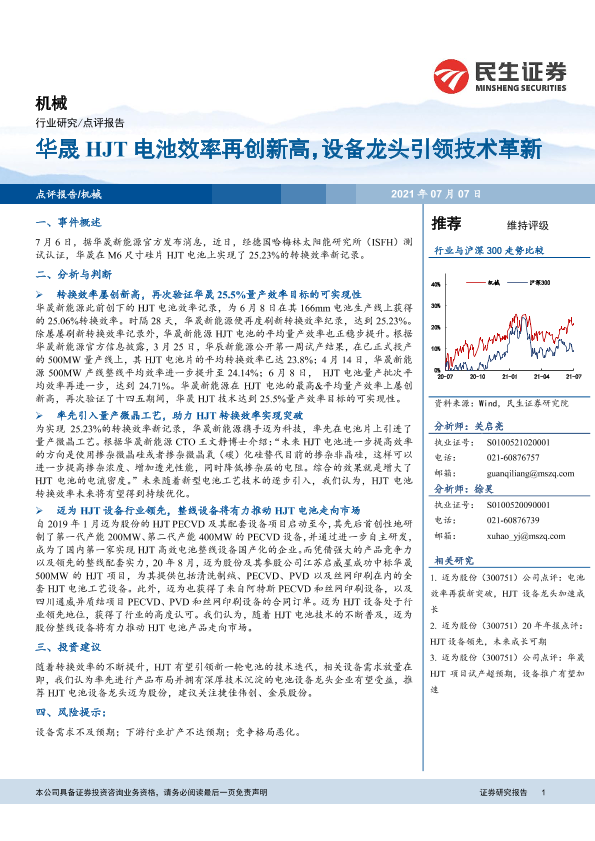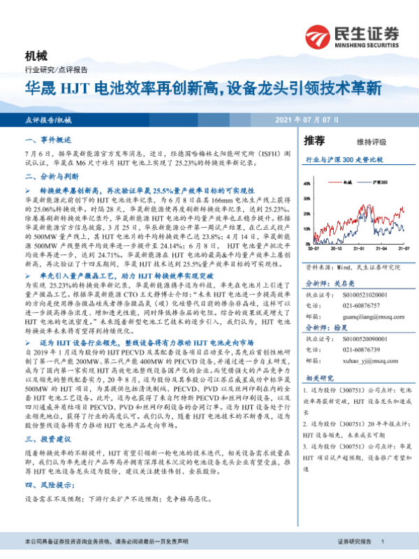 【民生证券】【20210707】机械行业:华晟HJT电池效率再创新高,设备龙头引领技术革新-4页