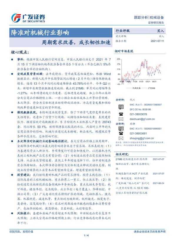【广发证券】【20210711】降准对机械行业影响:周期需求改善,成长韧性加速-4页
