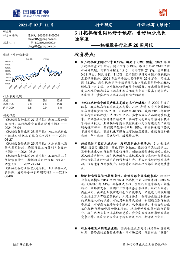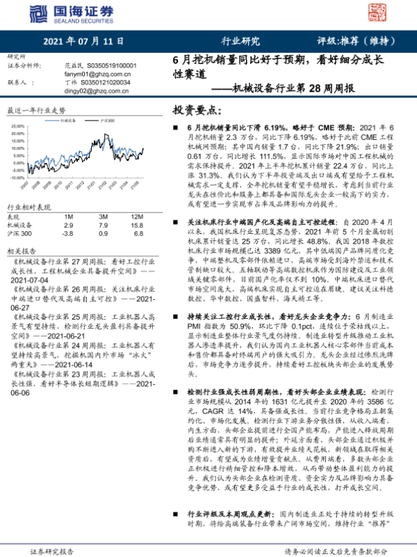 【国海证券】【20210711】20210711-国海证券-机械设备行业第28周周报:6月挖机销量同比好于预期,看好细分成长性赛道-19页