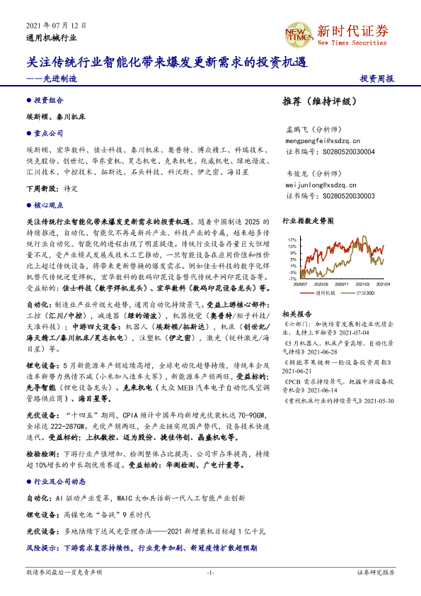 【新时代证券】【20210712】关注传统行业智能化带来爆发更新需求的投资机遇-15页