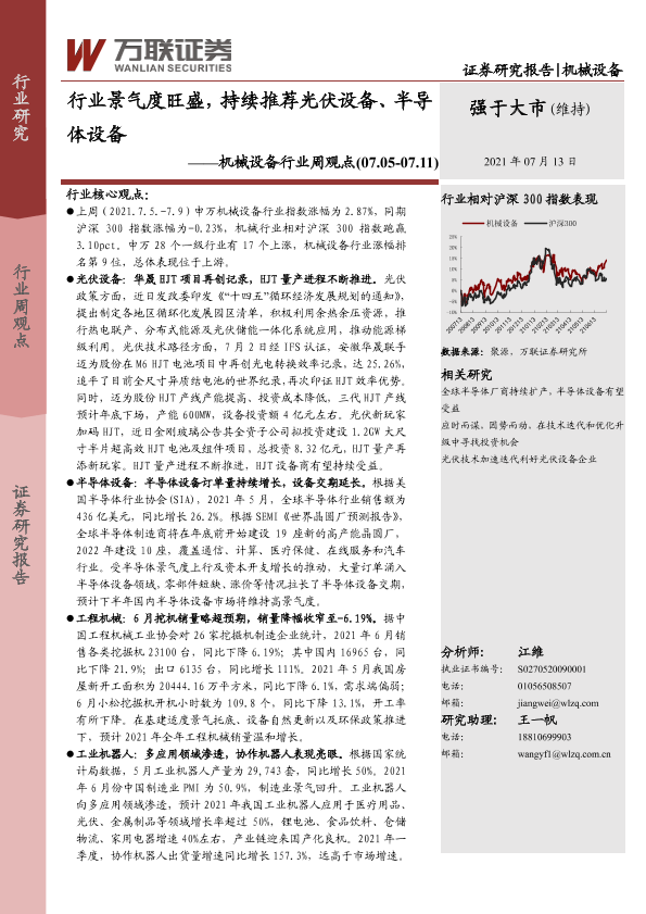 【万联证券】【20210713】20210713-万联证券-机械设备行业周观点:行业景气度旺盛,持续推荐光伏设备、半导体设备-14页