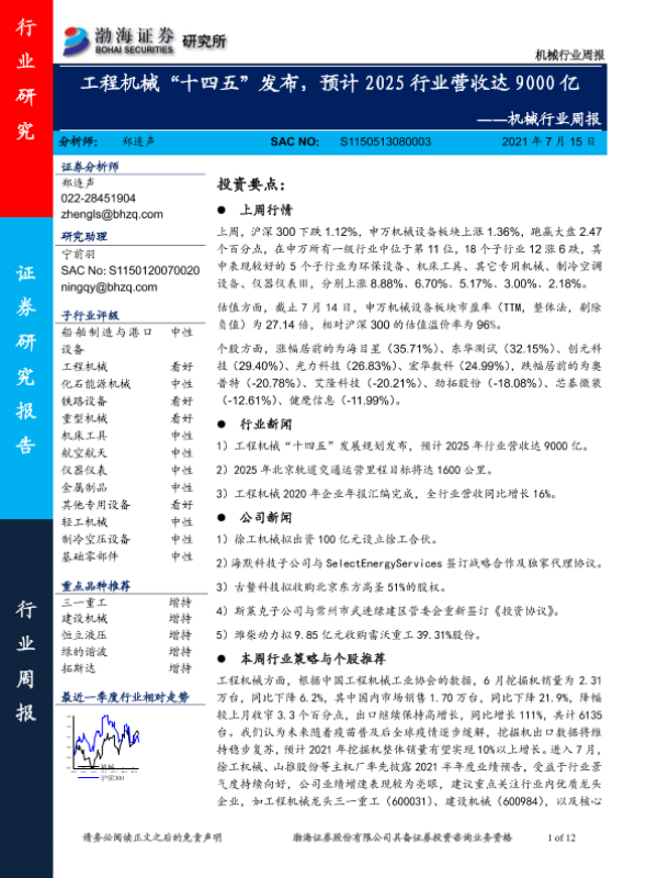 【渤海证券】【20210715】机械行业周报:工程机械“十四五”发布,预计2025行业营收达9000亿-12页