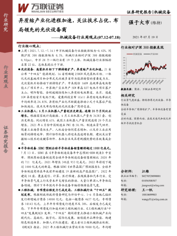 【万联证券】【20210719】20210719-万联证券-机械设备行业周观点:异质结产业化进程加速,关注技术占优、布局领先的光伏设备商-14页