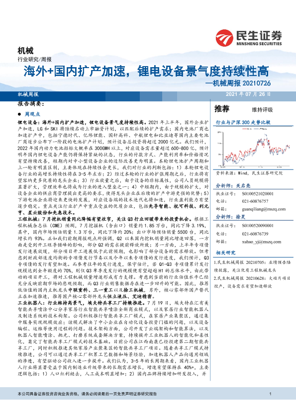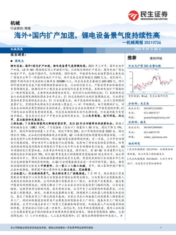 【民生证券】【20210726】20210726-民生证券-机械周报:海外+国内扩产加速,锂电设备景气度持续性高-22页