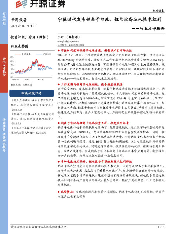 【开源证券】【20210730】专用设备行业点评报告:宁德时代发布钠离子电池,锂电设备迎来技术红利-3页