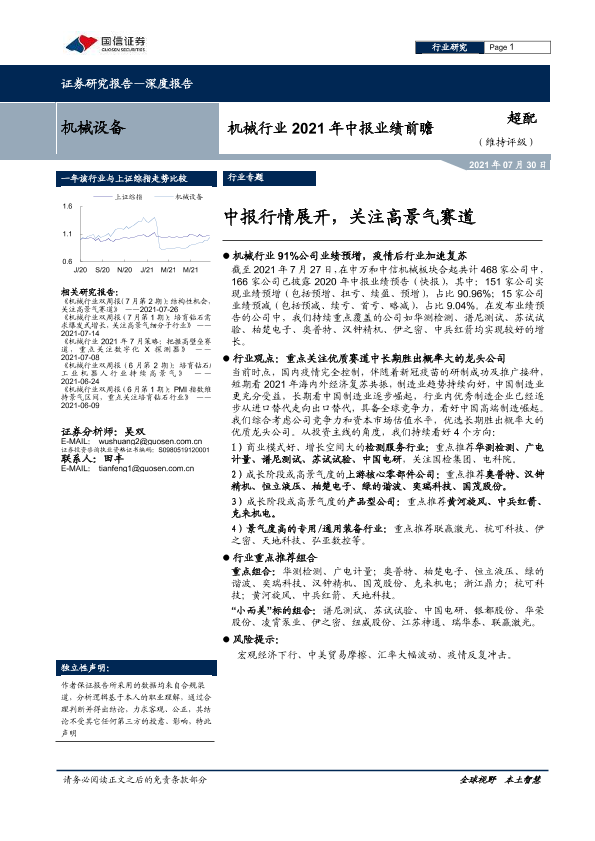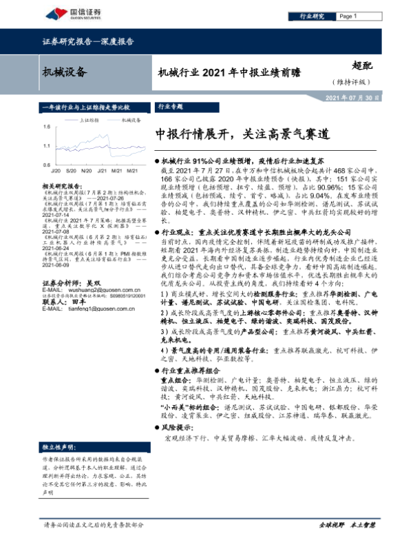 【国信证券】【20210730】机械行业2021年中报业绩前瞻:中报行情展开,关注高景气赛道-14页