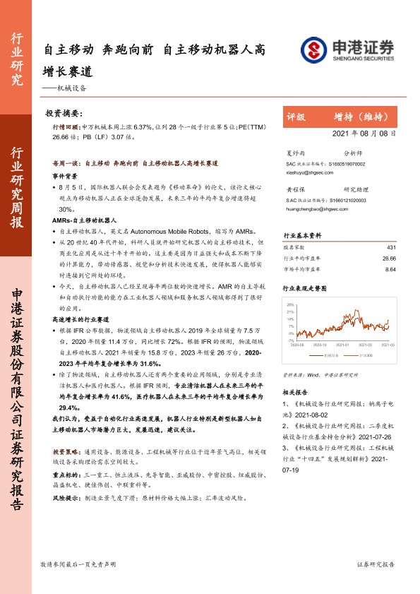 【申港证券】【20210808】20210808-申港证券-机械设备行业研究周报:自主移动 奔跑向前 自主移动机器人高增长赛道-14页