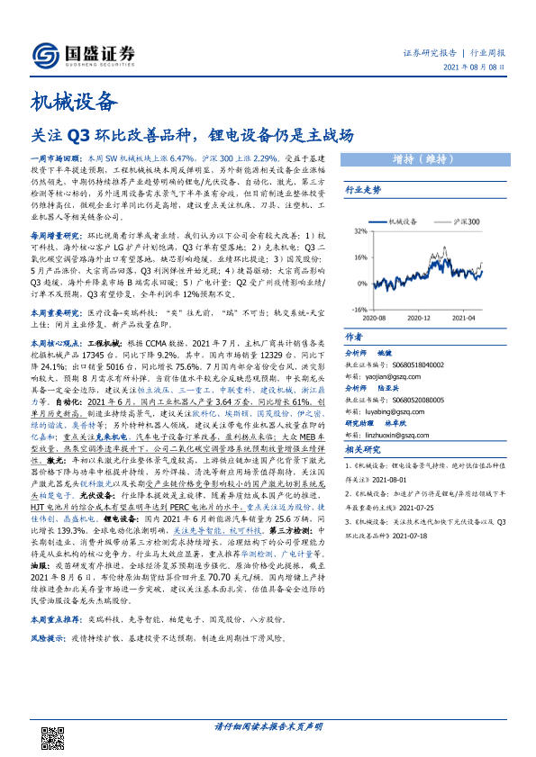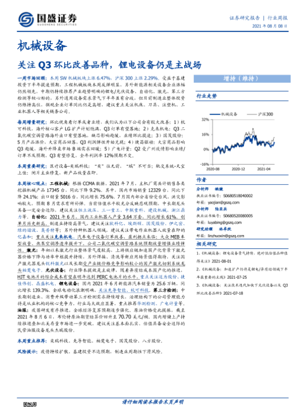 【国盛证券】【20210808】20210808-国盛证券-机械设备行业周报:关注Q3环比改善品种,锂电设备仍是主战场-12页