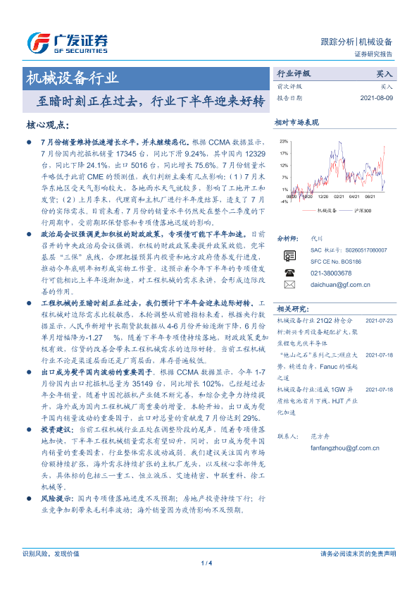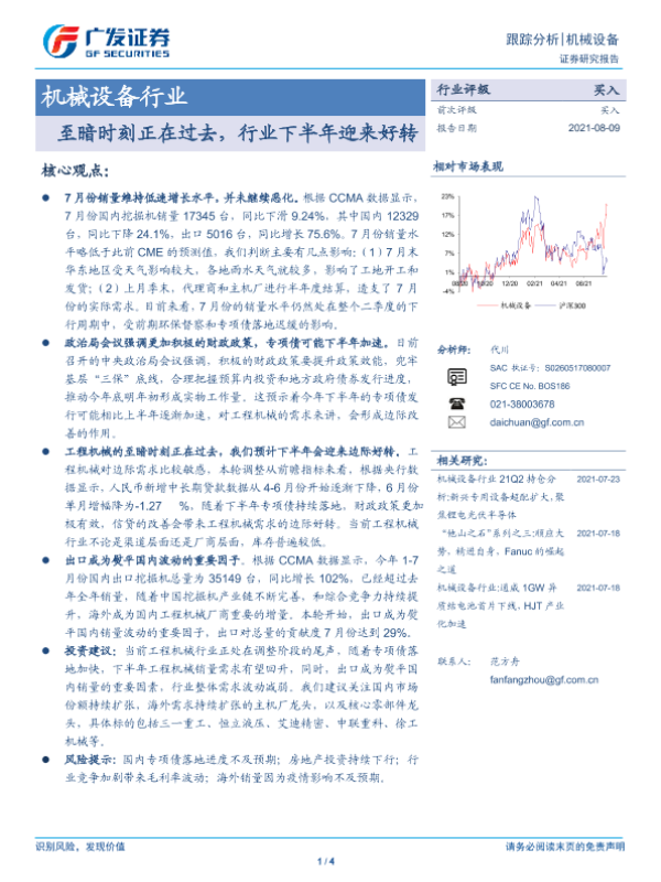 【广发证券】【20210809】机械设备行业跟踪分析:至暗时刻正在过去,行业下半年迎来好转-4页
