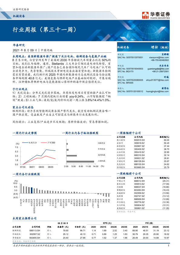 【华泰证券】【20210809】20210809-华泰证券-机械设备行业周报(第三十一周)-17页