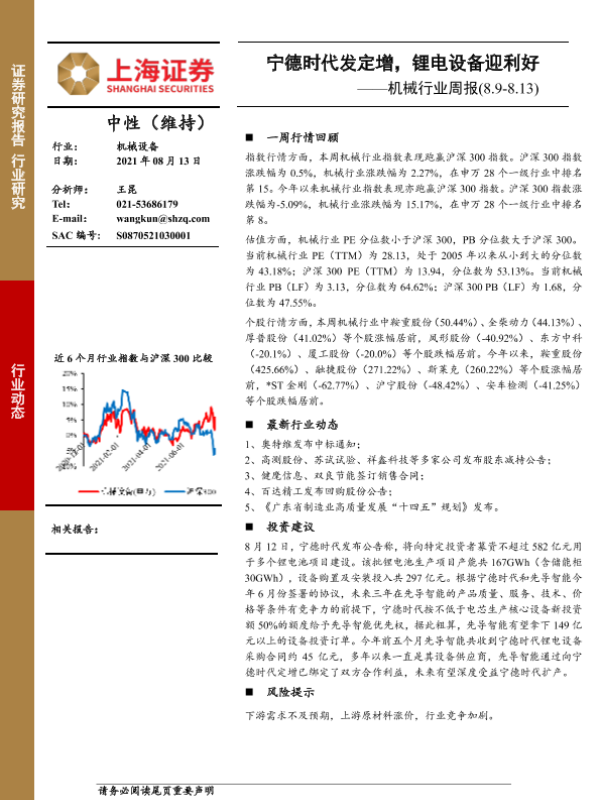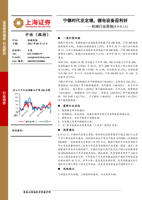 【上海证券】【20210813】机械行业周报:宁德时代发定增,锂电设备迎利好-8页