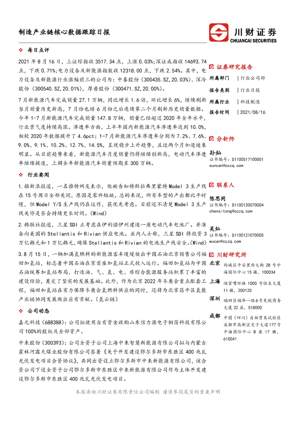 【川财证券】【20210816】制造产业链核心数据跟踪日报-5页