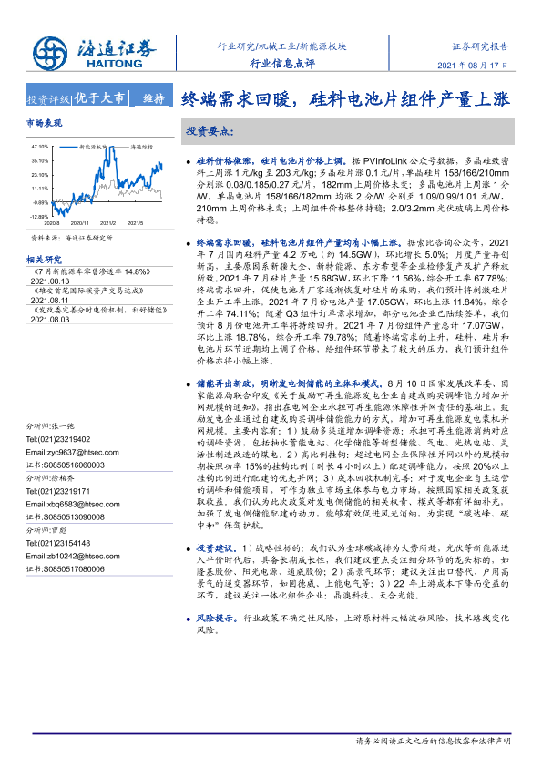 【海通证券】【20210817】机械工业:终端需求回暖,硅料电池片组件产量上涨-2页