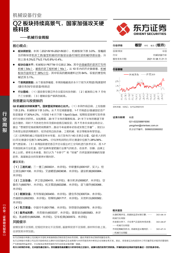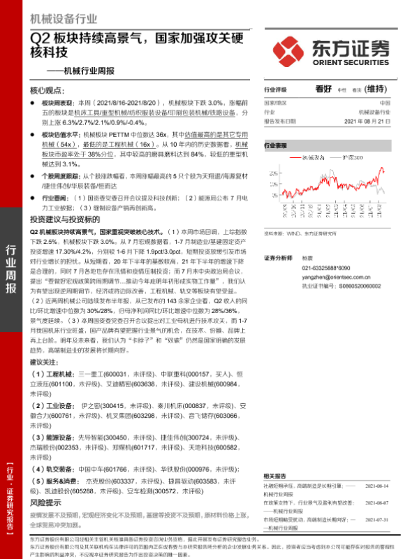 【东方证券】【20210821】20210821-东方证券-机械行业周报:Q2板块持续高景气,国家加强攻关硬核科技-28页