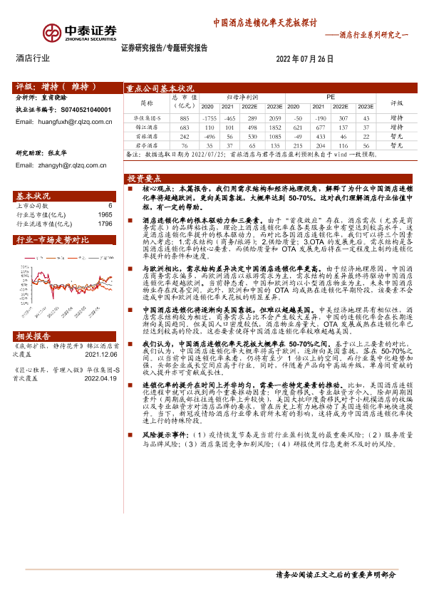 【中泰证券】【20220726】中国酒店连锁化率天花板探讨-22页