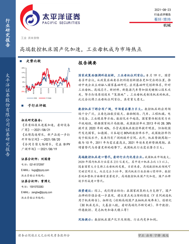 【太平洋证券】【20210823】高端数控机床国产化加速,工业母机成为市场热点-5页