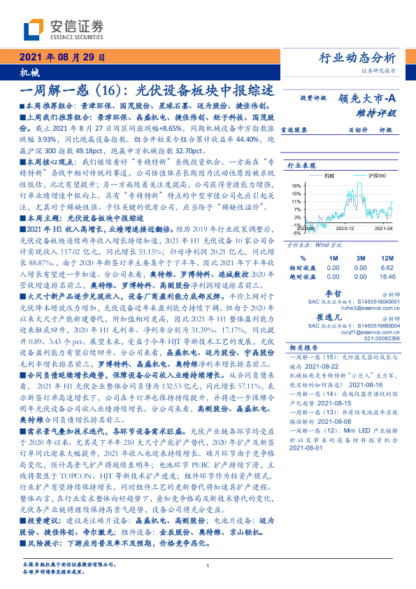 【安信证券】【20210829】机械一周解一惑(16):光伏设备板块中报综述-10页