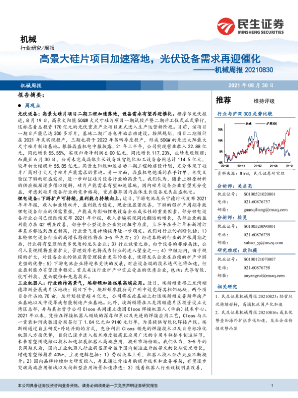 【民生证券】【20210830】20210830-民生证券-机械周报:高景大硅片项目加速落地,光伏设备需求再迎催化-21页
