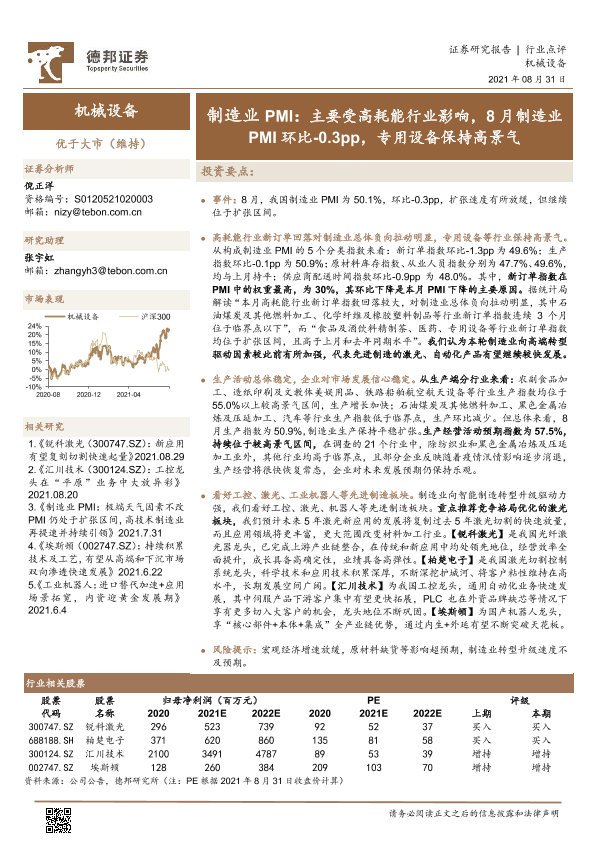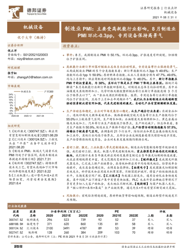【德邦证券】【20210831】机械设备行业点评:制造业PMI:主要受高耗能行业影响,8月制造业PMI环比-0.3pp,专用设备保持高景气-2页